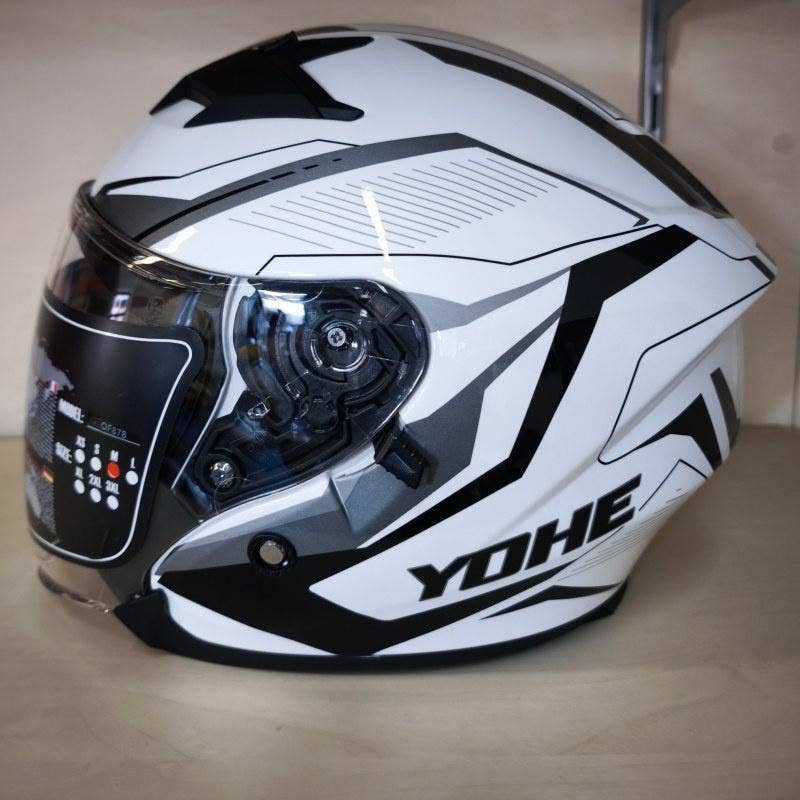 Značka Yohe se poprvé představuje českému trhu v roce 2018. Nyní představuje otevřenou vysoce kvalitní helmu s velkým plexi štítem a sluneční clonou v zajímavém designu. V matné černé barvě.
