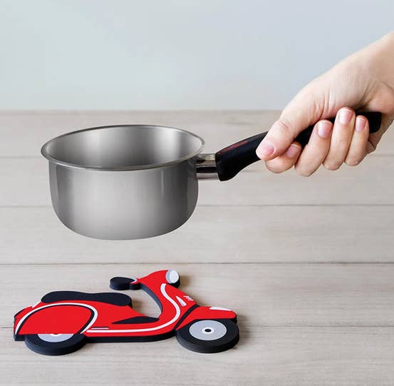 S touto silikonovou podložkou od společnosti BALVI se každá kuchyň stane skvostem, ale nejen to! Pomocí magnetického povrchu lze tuto podložkou ve stylu Vespy snadno spojit s hrnci nebo pánvemi. Podložka se přilepí na dno hrnce a vytvoří s ní tak celek. Takto můžete hrnec snadno postavit kamkoli. Podložka může být použita i pro jiné účely, ale drží se pouze magnetického dna.