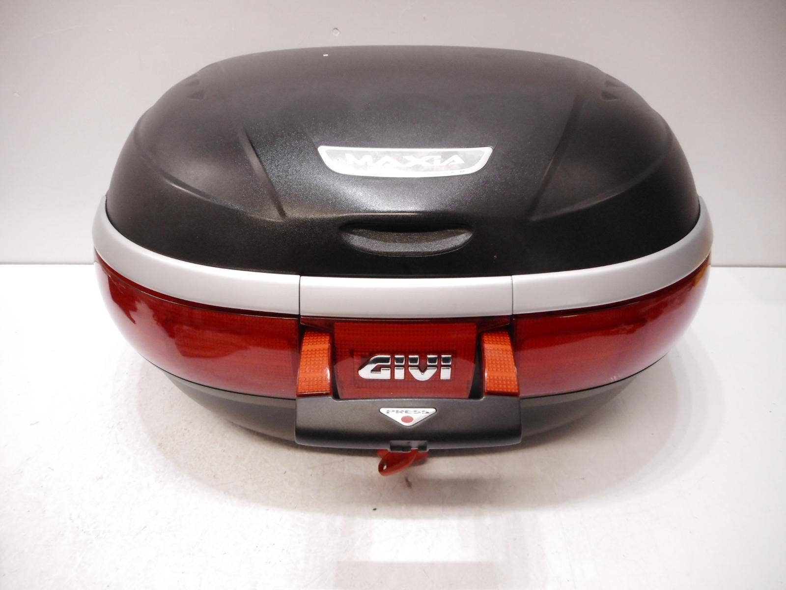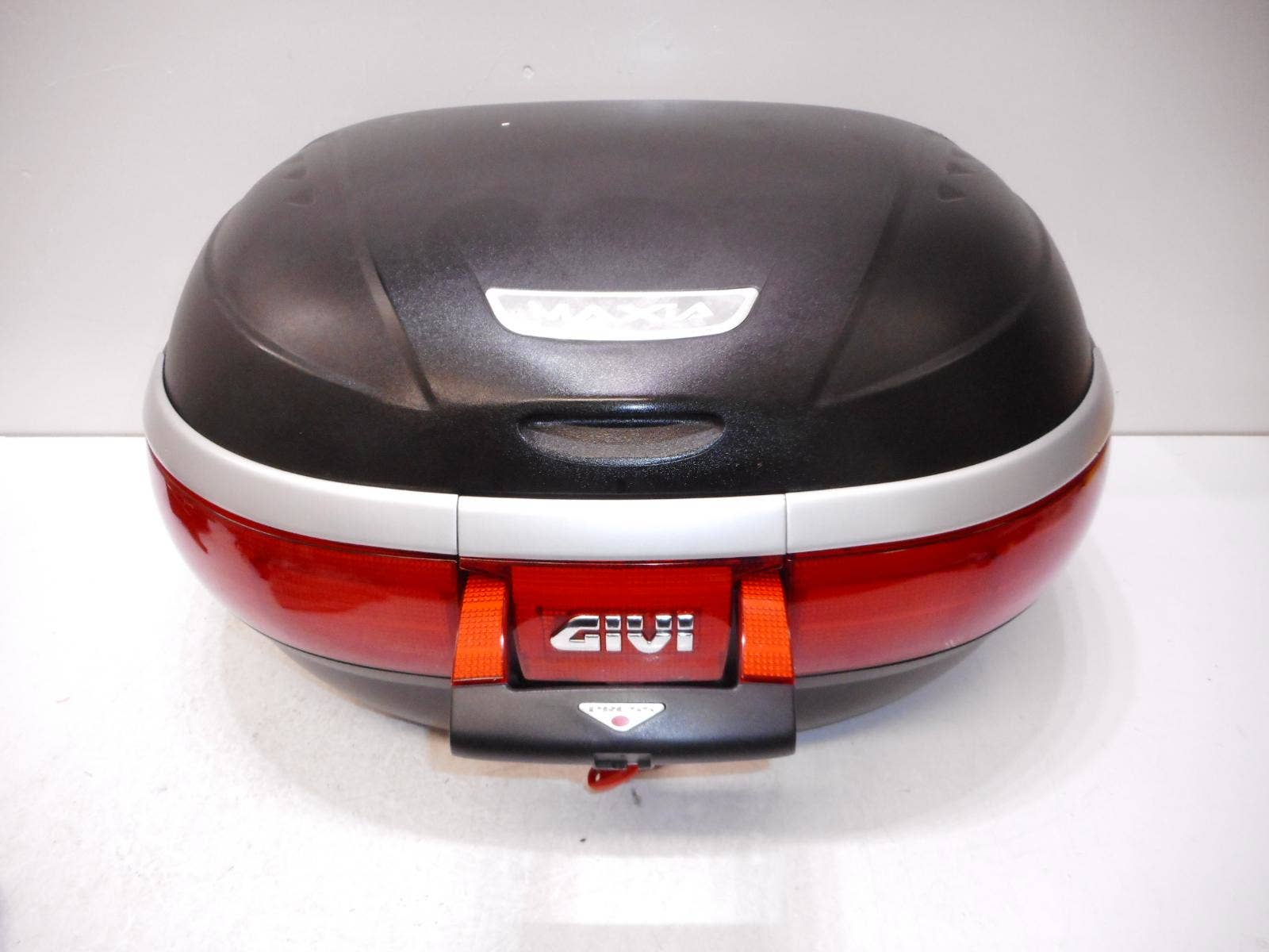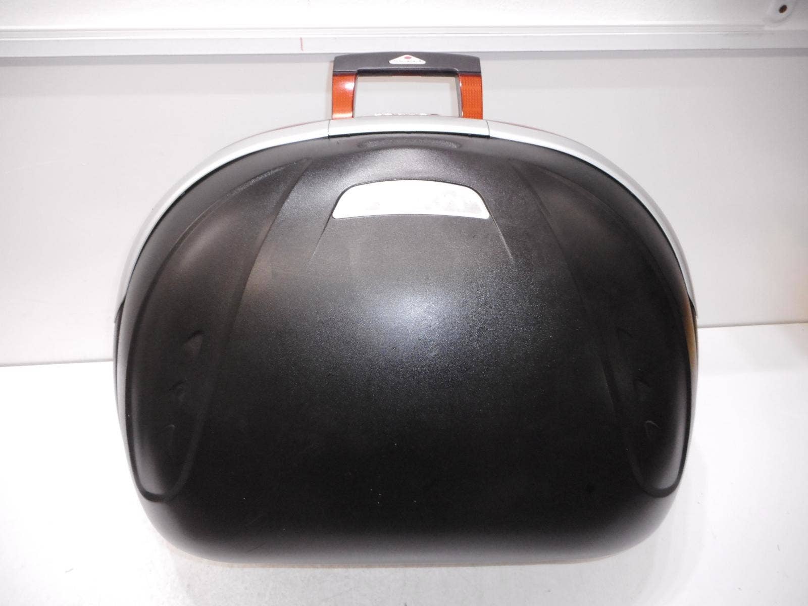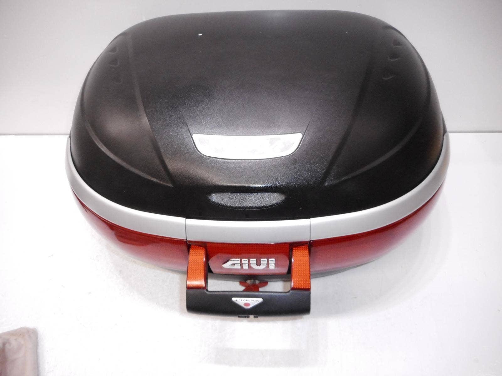 Veškeré zamykání, otevírání a systém uchycení je v pořádku. Povrch má místy oděrky (viz. foto). Velmi kvalitní kufr od prověřené italské značky GiVi pro všechny, kteří potřebují uložný prostor navíc. Díky zadním odrazným částem v červeném provedení budete v noci ještě lépe vidět. Kufr má objem 52l a nosnotst 10kg. Do kufru se vejdou dvě zavřené helmy.