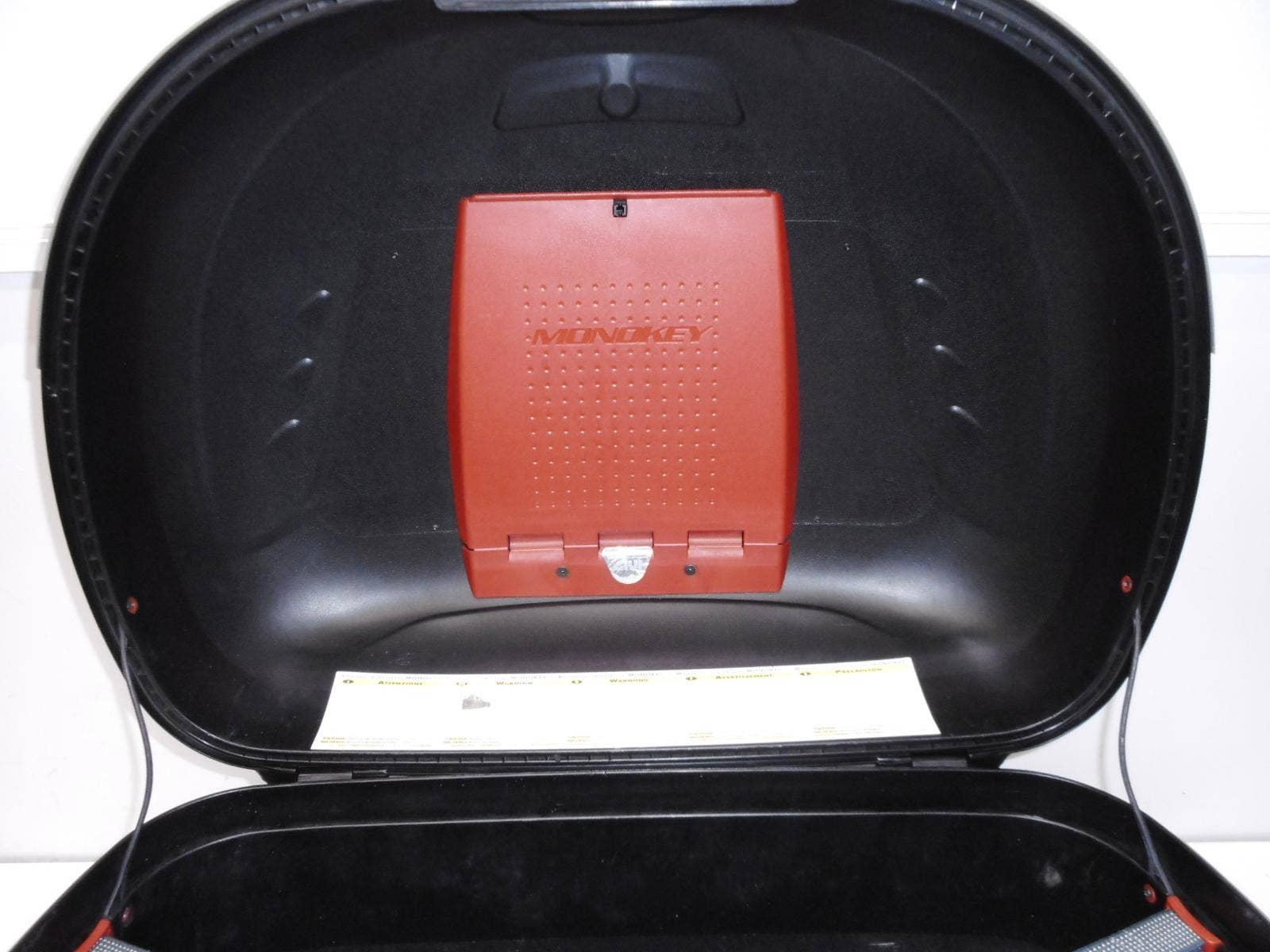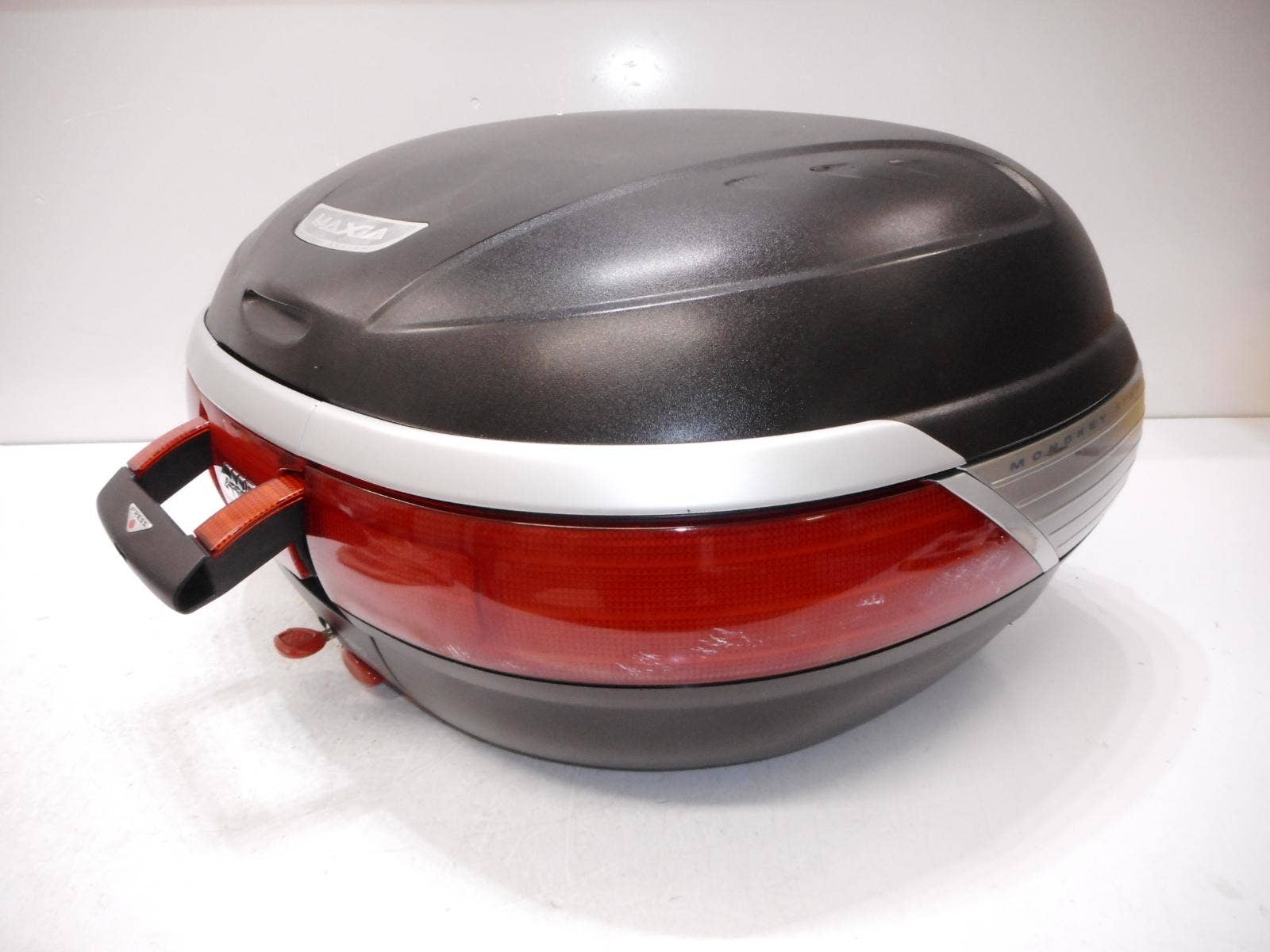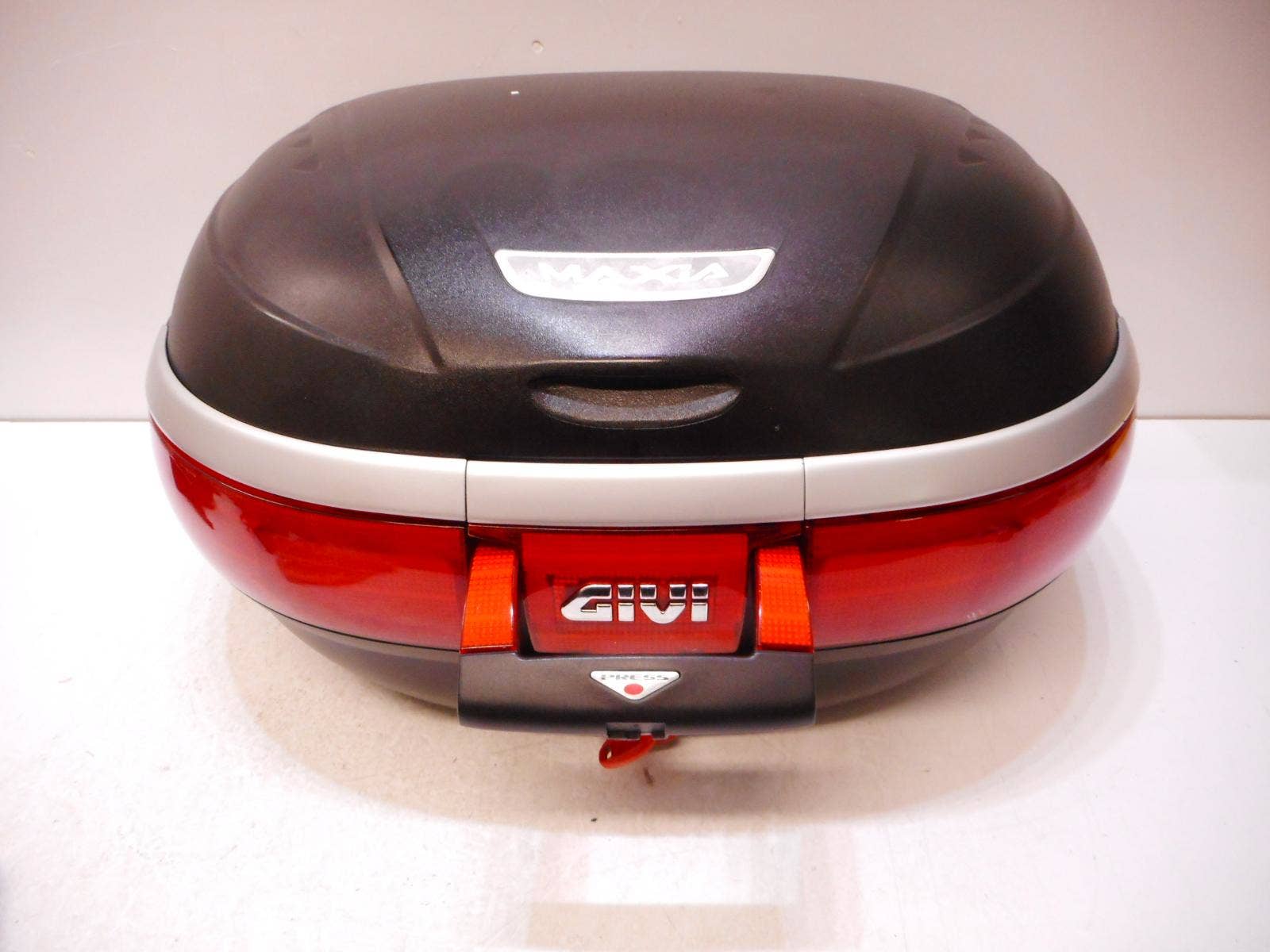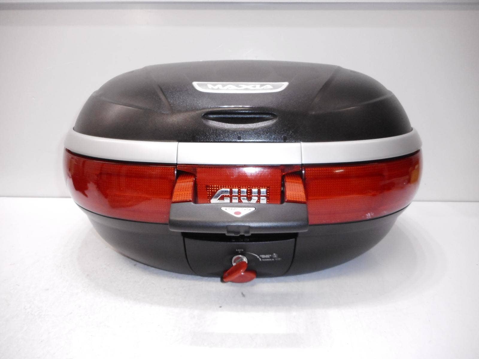 Veškeré zamykání, otevírání a systém uchycení je v pořádku. Povrch má místy oděrky (viz. foto). Velmi kvalitní kufr od prověřené italské značky GiVi pro všechny, kteří potřebují uložný prostor navíc. Díky zadním odrazným částem v červeném provedení budete v noci ještě lépe vidět. Kufr má objem 52l a nosnotst 10kg. Do kufru se vejdou dvě zavřené helmy.