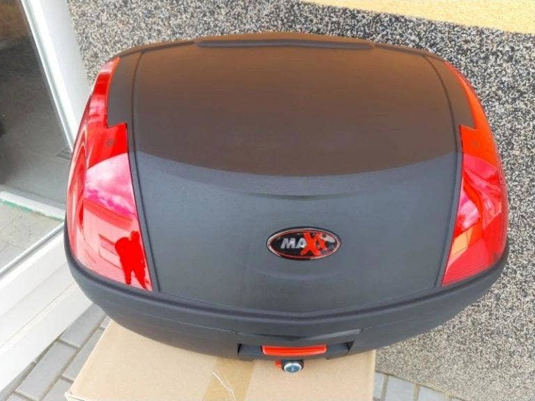 Odnímatelný motokufr na zadní nosič motocyklu s montážní sadou a plotnou.
