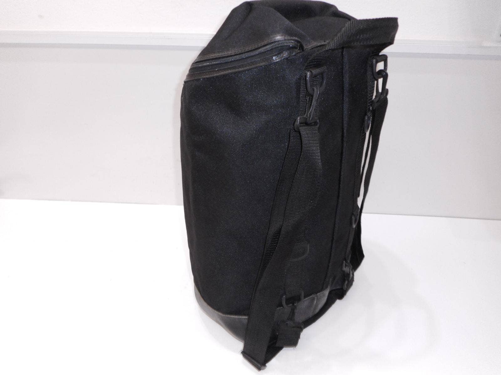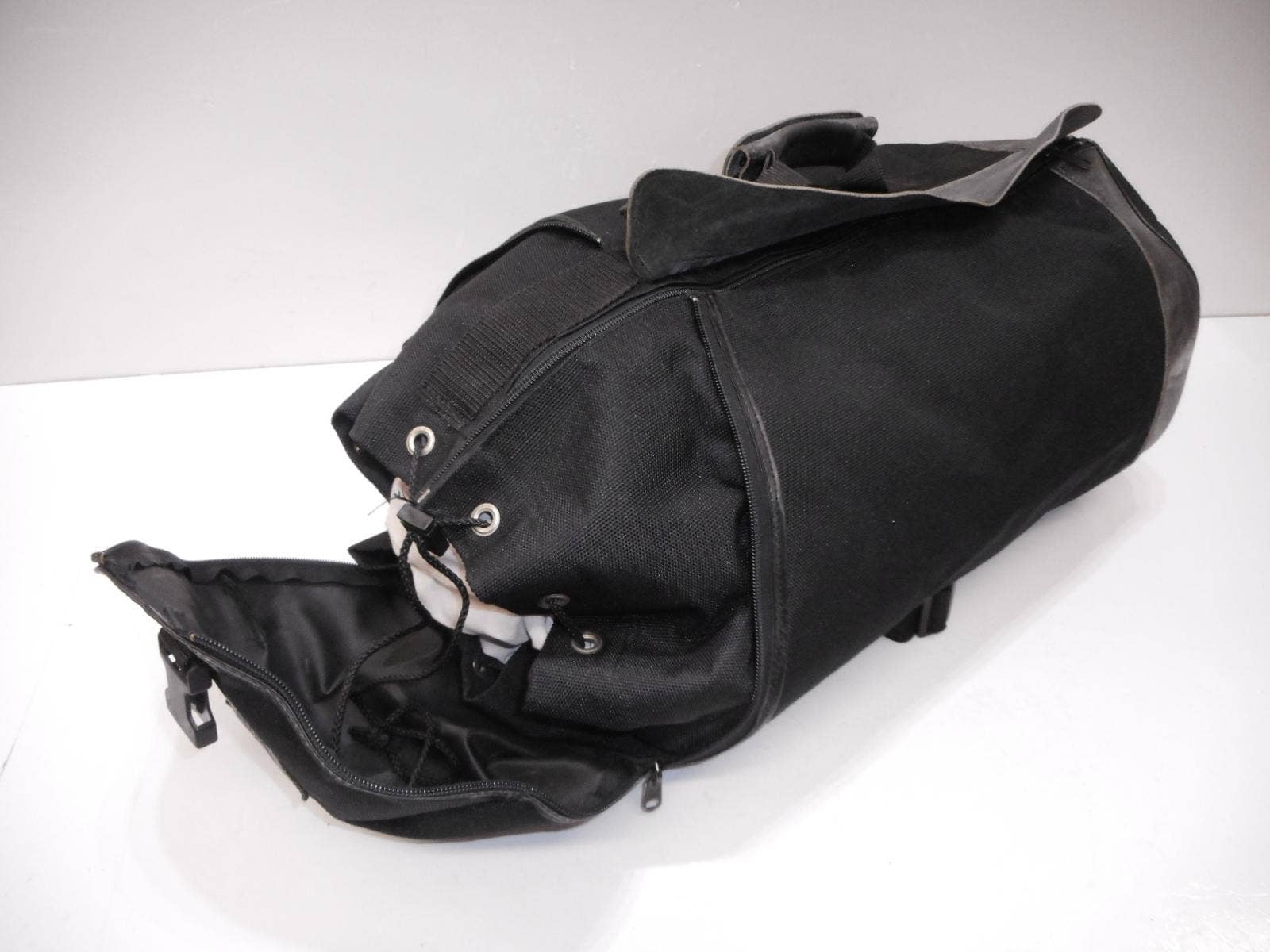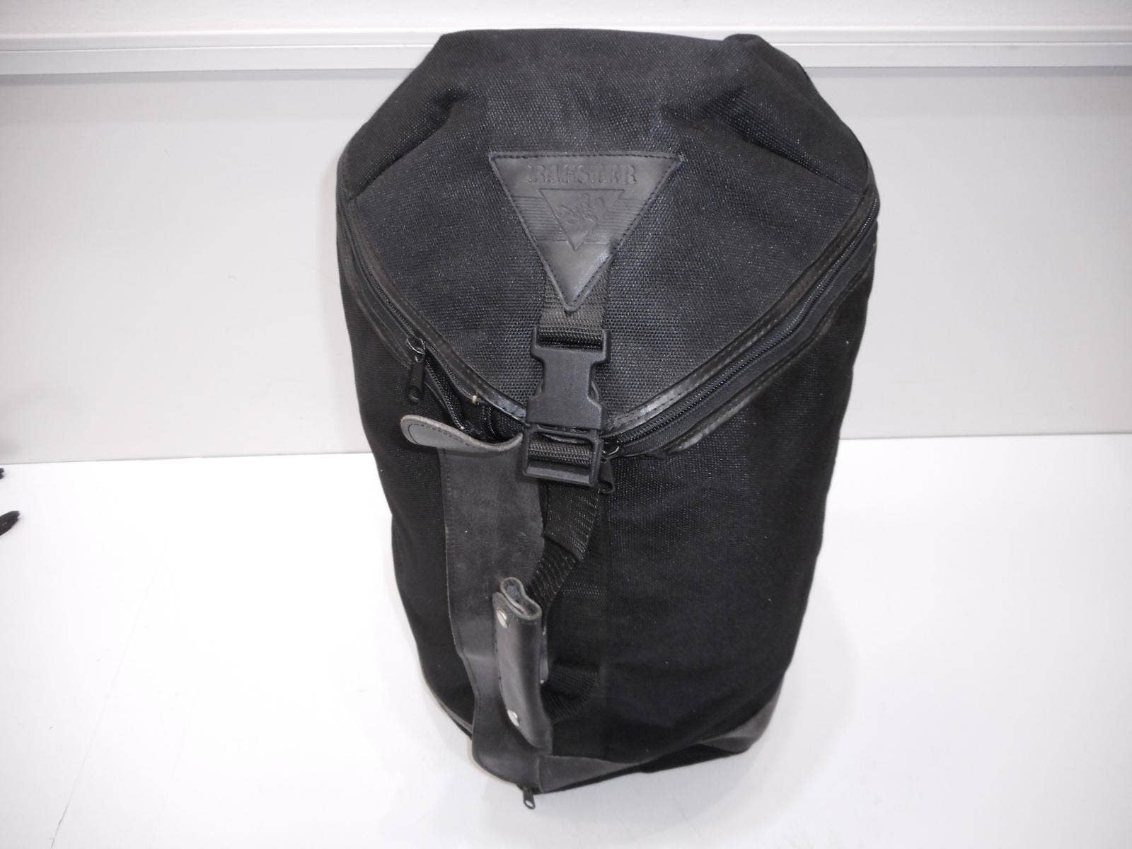 Motocyklový batoh Bagster. Kombinace textilu a kůže. Variabilní otevírání (horizontálně i vertikálně). Popruhy k nošení na zádech, jinak upnutí na nosič nebo sedlo motocyklu.