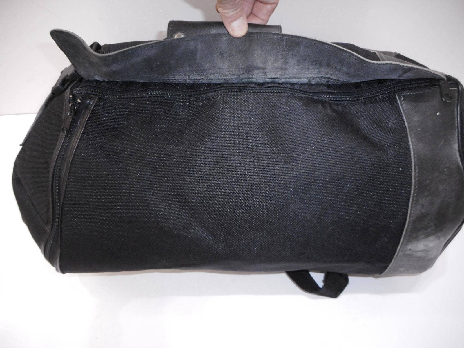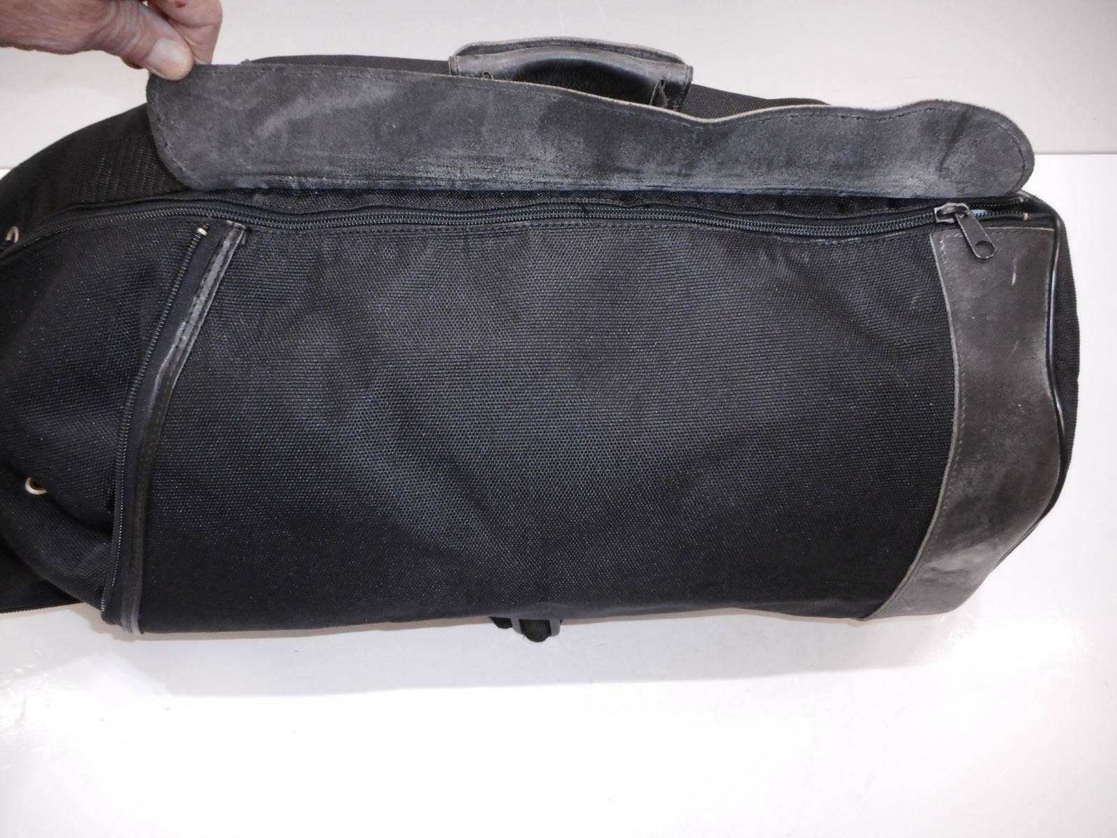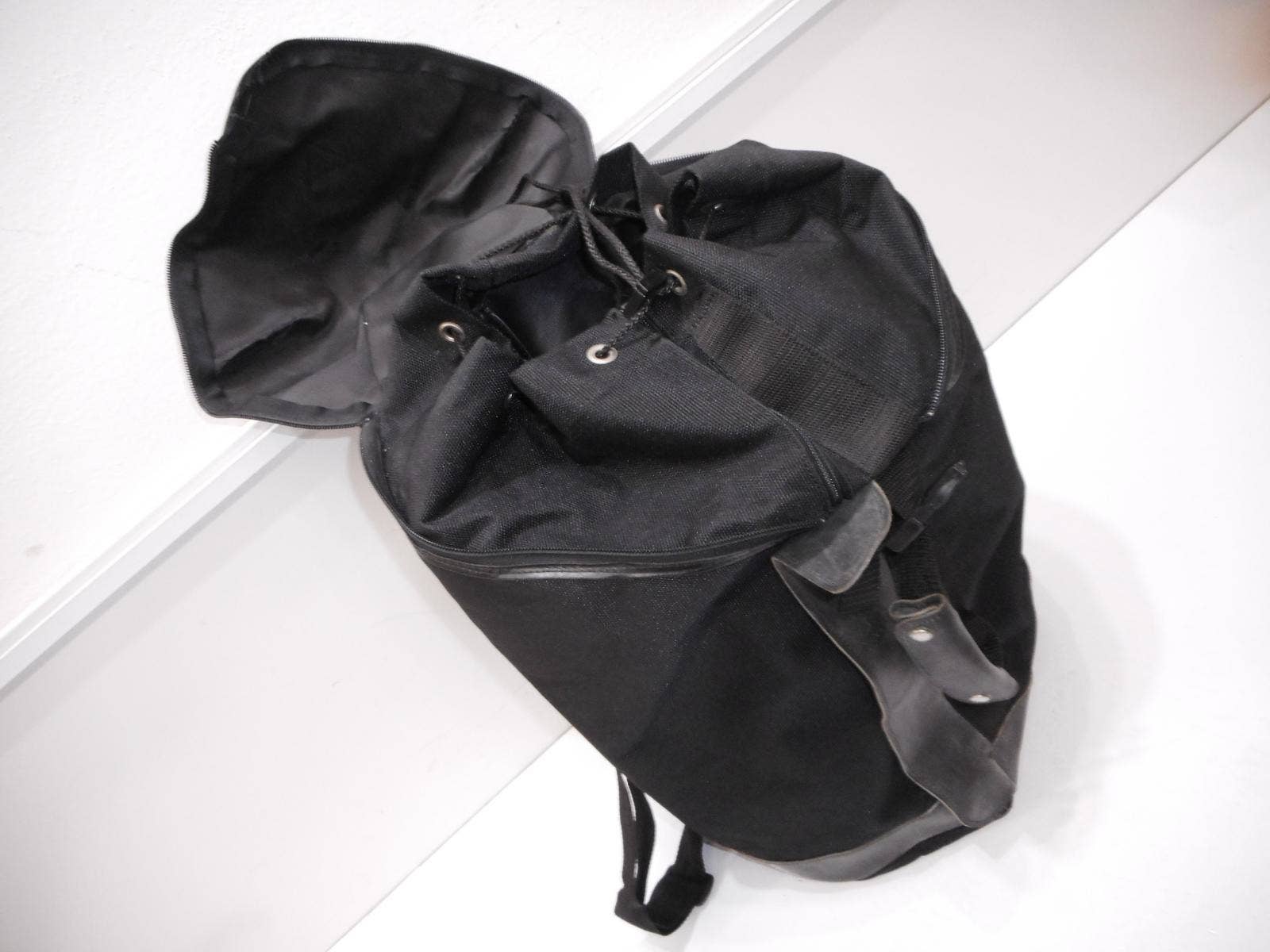 Motocyklový batoh Bagster. Kombinace textilu a kůže. Variabilní otevírání (horizontálně i vertikálně). Popruhy k nošení na zádech, jinak upnutí na nosič nebo sedlo motocyklu.